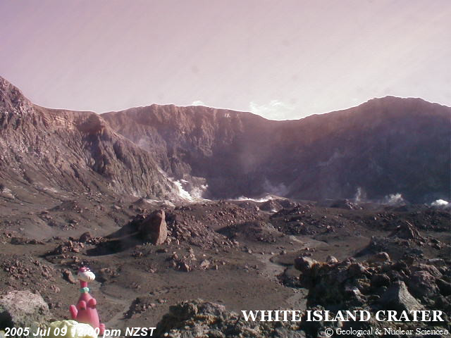 Krater na Białej Wyspie, a w lewym dolnym rogu ... dino